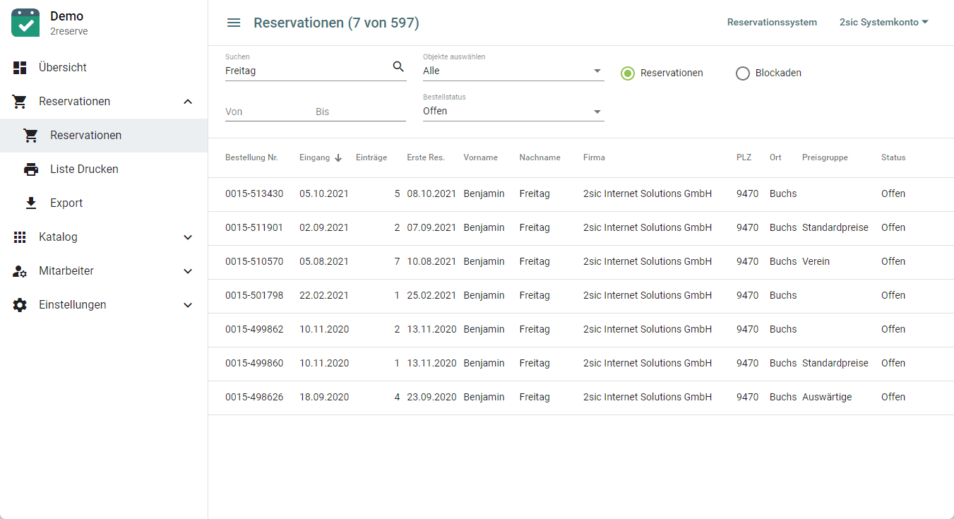 - Neue und übersichtliche Oberfläche für die Reservationsverwaltung