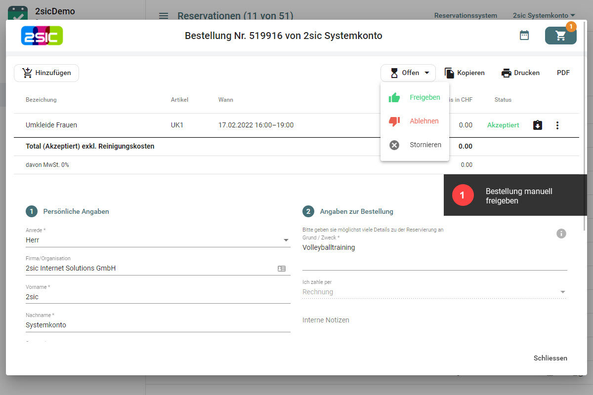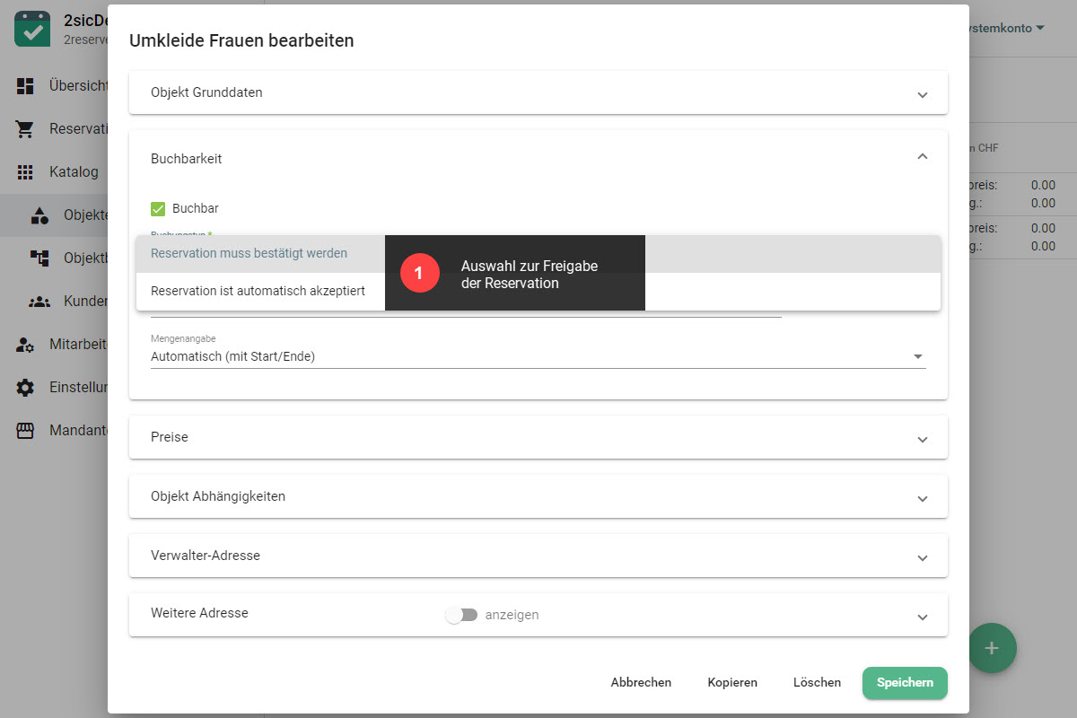Bei jedem Objekt ist hinterlegt, ob Buchungen vom Verwalter geprüft oder automatisch bewilligt werden. So kannst du den Freigabeprozess an deine Bedürfnisse anpassen.