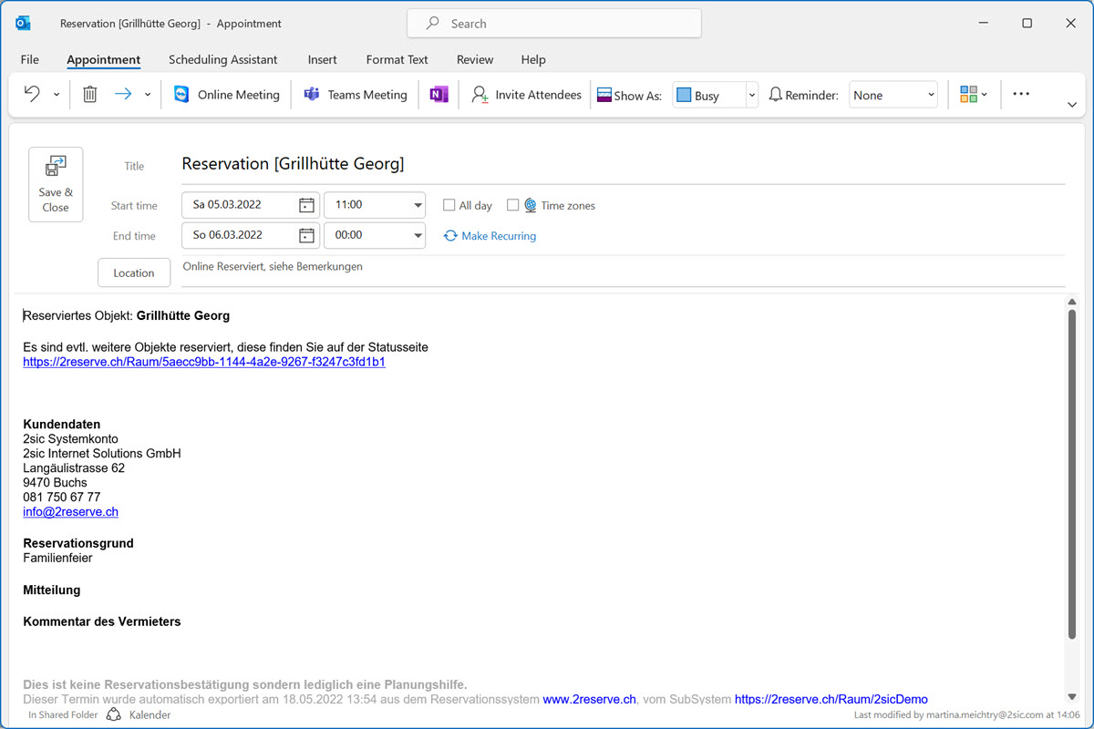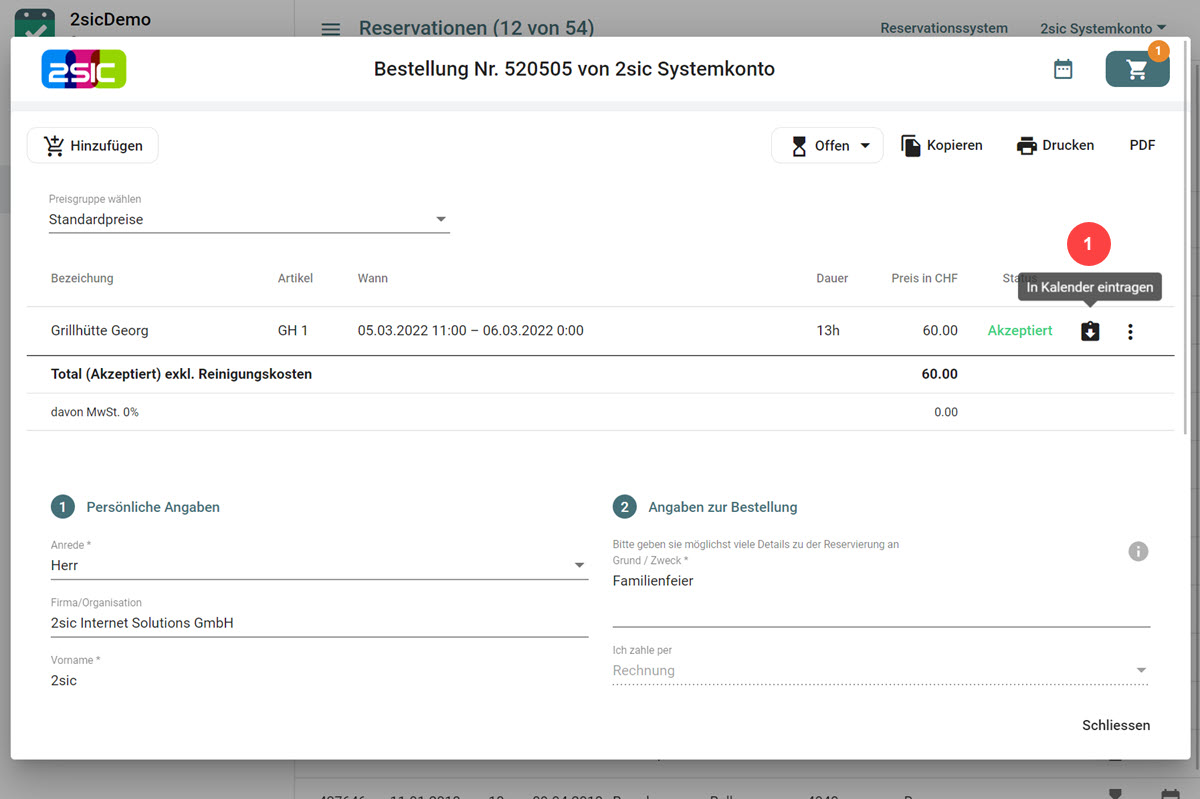 Bei wichtigen Reservierungen unterstützt dich die Erinnerungsfunktion. Diese kann hilfreich für den Hauswart sein, um seine Aufgaben frühzeitig anzugehen und überschauen zu können. Weitere Personen können an Aufgaben erinnert werden – wie zum Beispiel